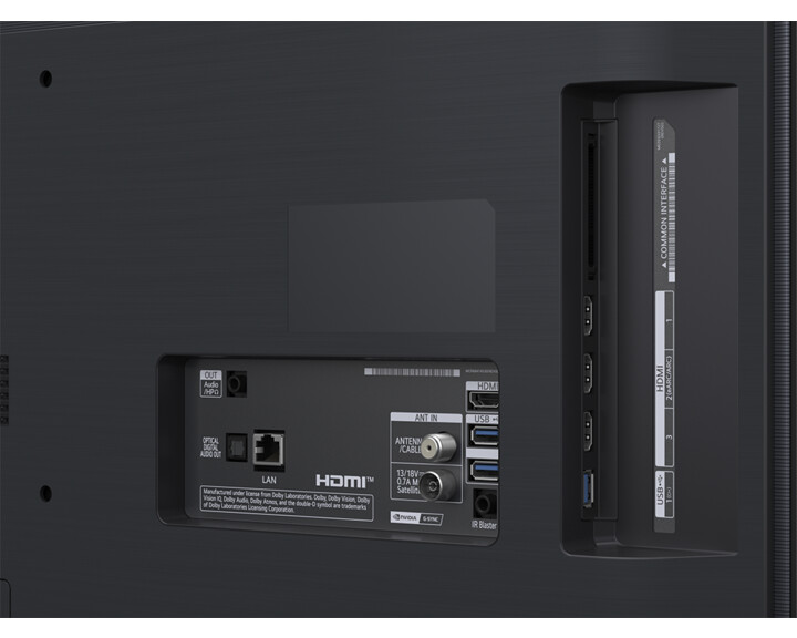 Aansluitingen: 4× HDMI 2.1, 3× USB 2.0, eARC (via HDMI), optische audio, Ethernet, Wi-Fi 6, Bluetooth 5.3, RF, CI-slot, VESA 300×200 mm